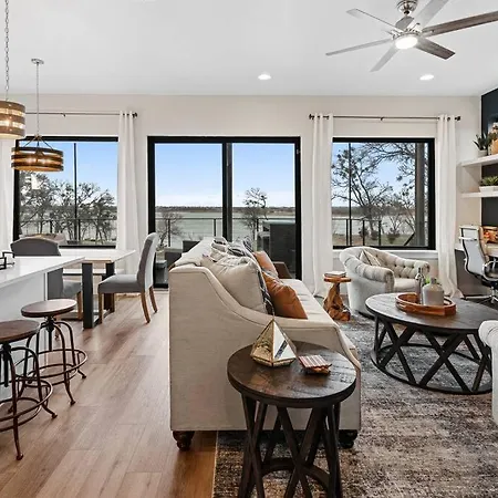 **Welcome to the New Luxury Lakefront N Dallas**, a premier retreat situated in The Colony, where relaxation meets modern elegance. Just 35 kilometers from the Dallas-Fort Worth International Airport, this stunning property promises an idyllic escape, perfect for families and groups looking to rejuvenate by the shimmering waters. The serene landscape is complemented by contemporary architecture, ensuring guests enjoy both luxury and comfort throughout their stay.